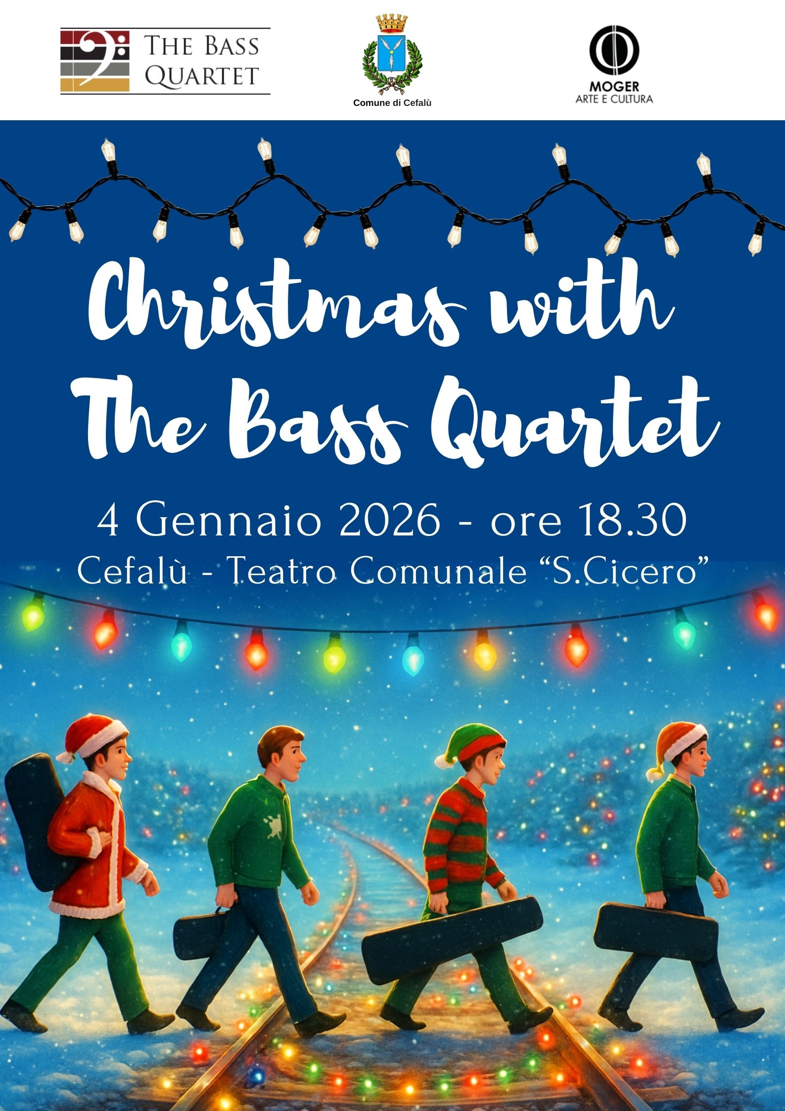 The Bass Quartet – Christmas Concert 1 Days 21 Hours 5 Minutes Date 4 Gennaio 2026 Time 18:30 Location Cefalù (PA), Italy Venue Teatro Comunale S.Cicero