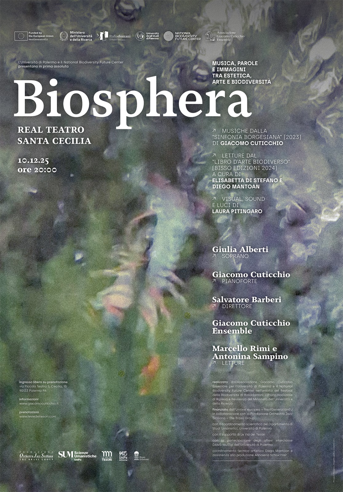 Biosphera – Sinfonia Borgesiana – Giacomo Cuticchio Ensemble 4 Days 15 Hours 59 Minutes Date 10 Dicembre 2025 Time 20:00 Location Palermo (PA), Italy Venue Teatro Santa Cecilia
