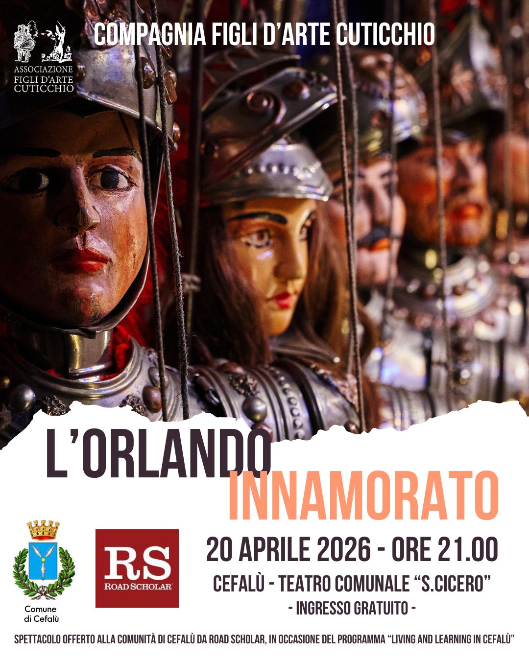 L’Orlando Innamorato – G.Cuticchio Ensemble e Figli d’arte Cuticchio 0 Days 17 Hours 19 Minutes Date 20 Aprile 2026 Time 21:00 Location Cefalù (PA), Italy Venue Teatro Comunale S.Cicero