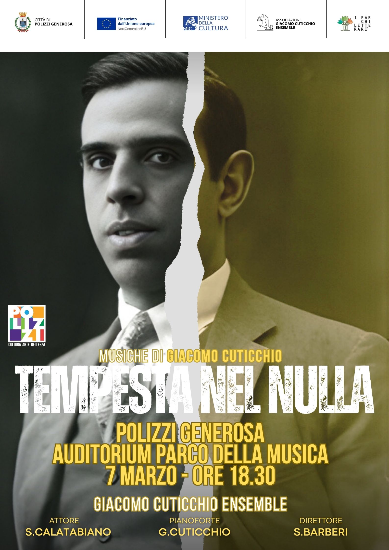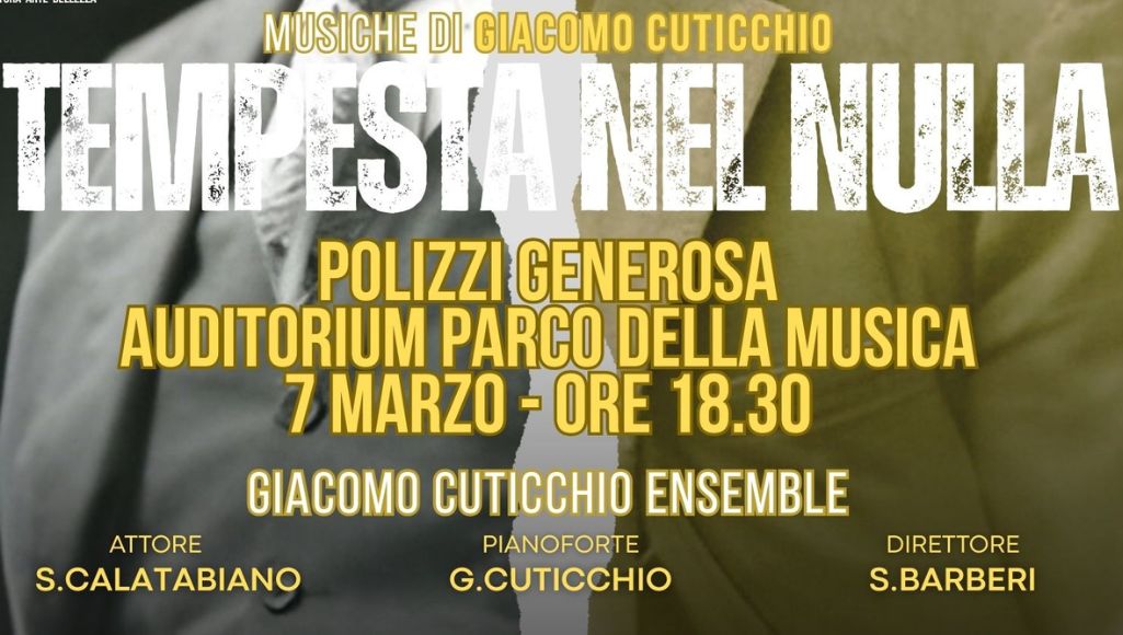 Tempesta nel nulla – G.Cuticchio Ensemble Date 7 Marzo 2026 Time 18:30 Location Polizzi Generosa (PA), Italy Venue Auditorium Parco della Musica